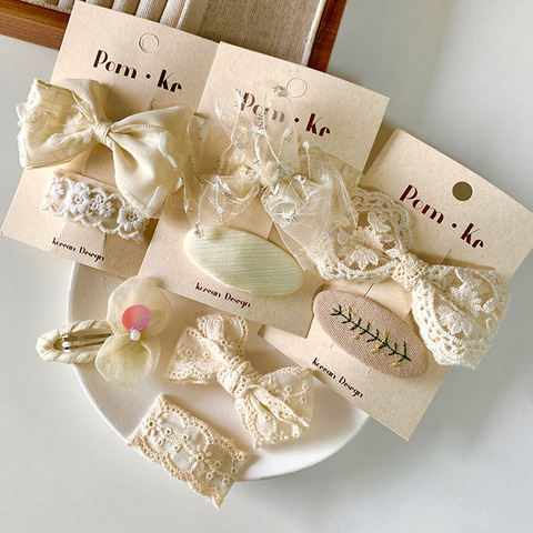 Pince à cheveux mignonne pinces à cheveux pour filles nouvelle arrivée coréenne printemps Collection rose dentelle fleur pince tissu matériel (2 pièces)